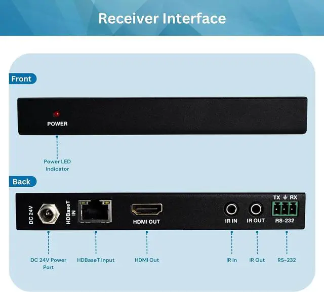 BI-DIRECTIONAL IR & CEC, RS-232 PASS THROUGH & HD AUDIO FORMATS Control your source from your display/receiver side, or vice-versa with through Bi-Directional IR, source devices and displays can be turned on and off with the JTECH-HDT150 through supported CEC commands, and pass RS-232 commands from a computer to your source and display with a Phoenix jack. The JTECH-HDT150 also supports many HD audio formats, including Dolby Digital, Dolby TrueHD, DTS 5.1, and PCM.