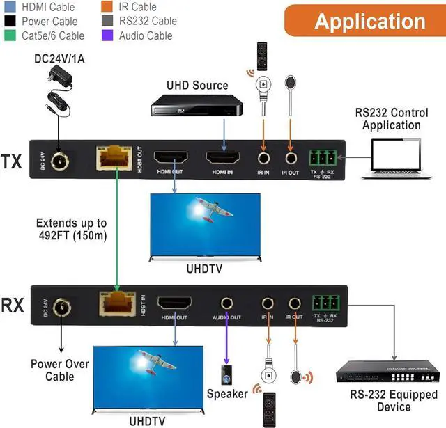 BI-DIRECTIONAL IR & CEC, RS-232 PASS THROUGH: Control your source from your display/receiver side, or vice-versa via Bi-Directional IR. Pass RS-232 or CEC commands from source to display or from display to source via Bi-Directional CEC & Bi-Directional RS-232 pass-thru.