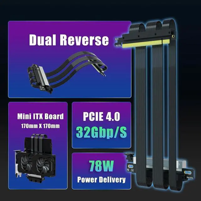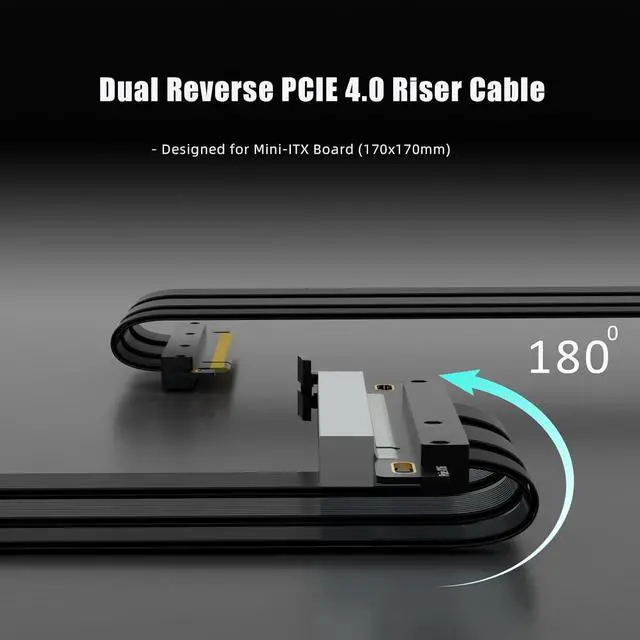 Double reverse PCIE 4.0 riser cable for Mini-ITX motherboard (170x170mm) installation, Compatible with RTX 40/30 Series and Radeon RX7000/RX6000 Series