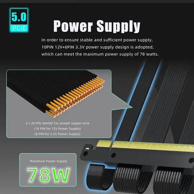 • Robust 78W Power Delivery: 40-pin connector with 10 pins dedicated to 12V (up to 78W) and 6 pins for 3.3V, ensuring stable power supply under heavy loads