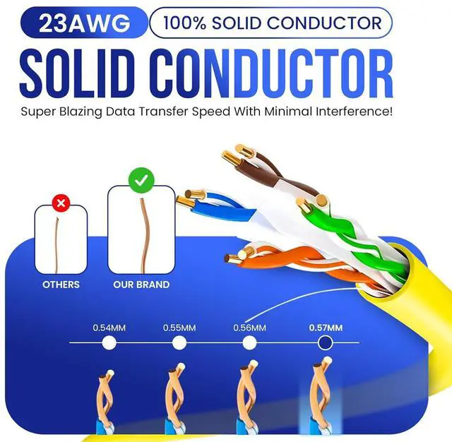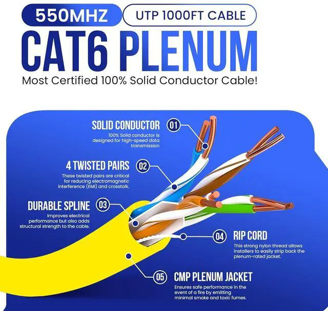 : This is not just any Cat6 ethernet cable. It is a lightning-fast Cat 6 Plenum Ethernet cable made with state-of-the-art high-end materials. With a thick plenum jacket and solid conductors, it supports up to 10 Gigabit speed and 550MHz bandwidth. Whether for gaming, streaming, or heavy traffic, this Cat6 cable delivers data flawlessly.
