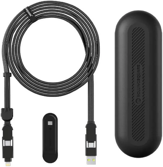 Rolling Square InCharge XL 300cm - USB C Charger Cable, Lightning Cable for Smartphone, Universal Cable Charger 6 in 1, USB Plug, Black, 100W