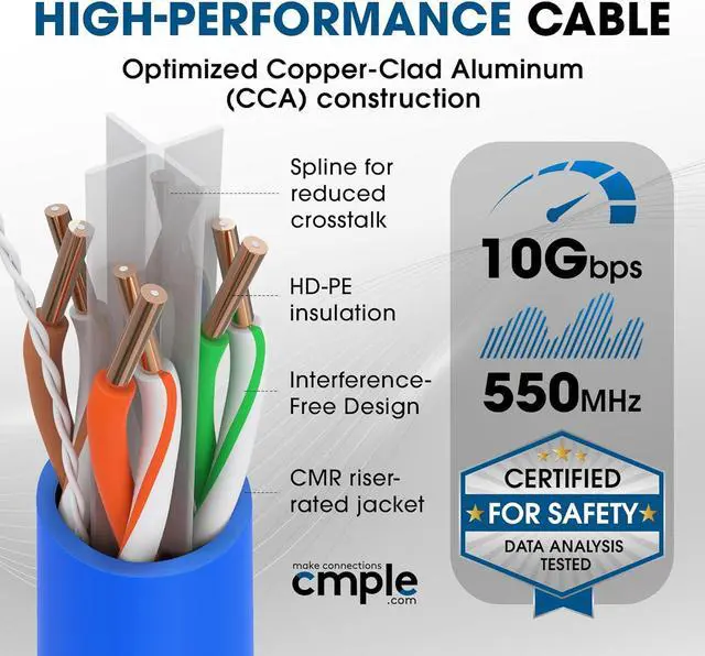 Cmple - Cat6 Network (UTP), 23AWG Bulk LAN Ethernet Cable, CMR, Support 10 Gbps - 550 MHz, 1000 Feet, Blue