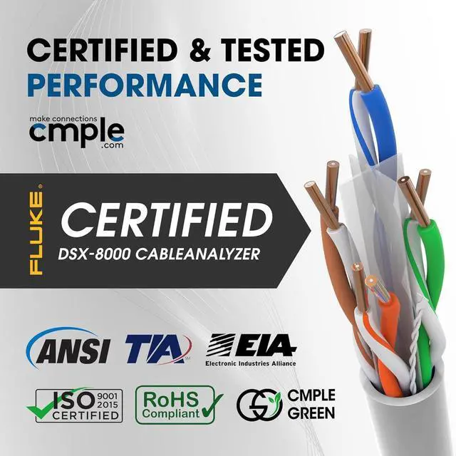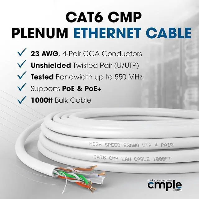 Package Includes: 1000 Feet Cat6 Ethernet Cable is a CMP UTP Bulk Wire, 550 MHz - White