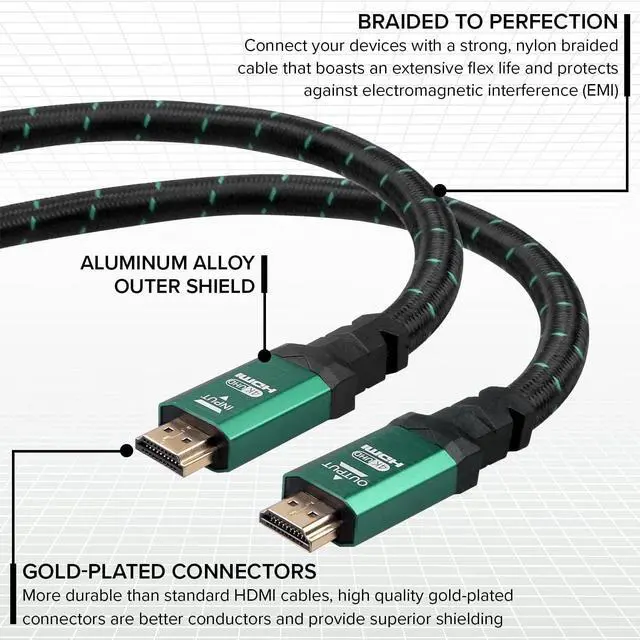 THE ULTIMATE 4K HDMI CABLE | Premium HDMI 2.0 19 pin Gold Plated Connector Enables Seamless Video & Audio Transfer with Powerful 4K @ 60Hz Support Including UHD, 3D, 2160p, 1080p, ARC & Ethernet | Perfect for Sending Media to TV, Projector or Monitor from Laptop, Computer, Streaming Stick, Gaming Console, Blu-Ray/DVD Player & More