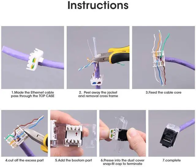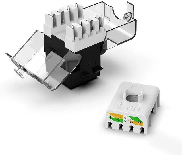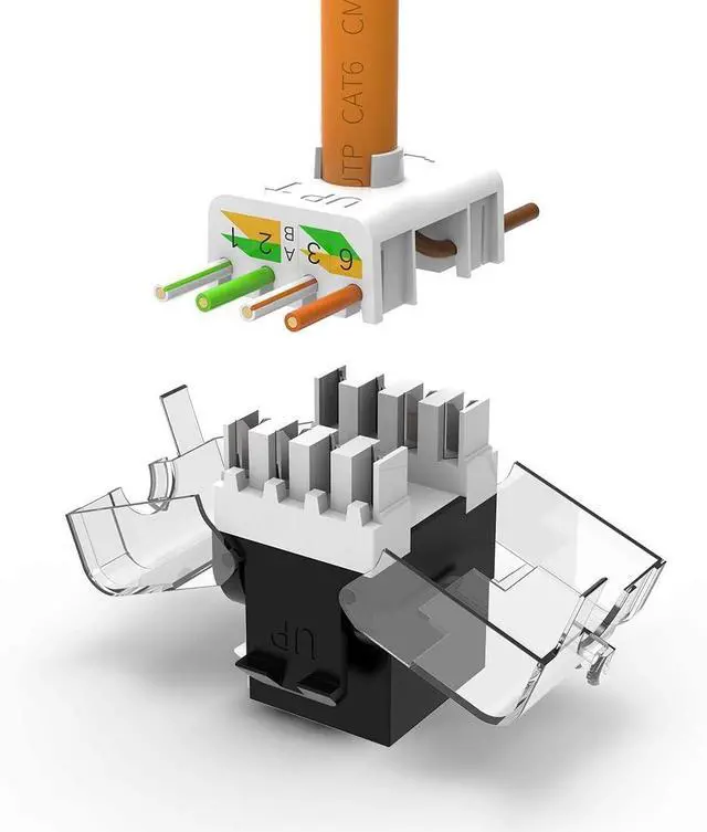 Self-terminating, no tool required: This toolless UTP CAT6 keystone Jack is a female RJ45 connector for networking;The cable conductors can be terminated by a 180 Degree snap-fit cap being pressed into place, designed to smoothly snap into most of the standard keystone applications