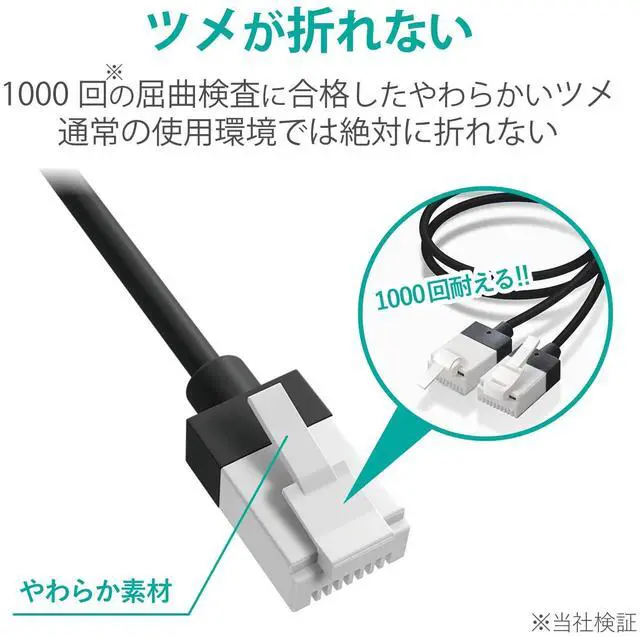 The LAN cable is made with connectors made of highly durable material that is resistant to bending. Pass 1000 bending tests (verified by our company)