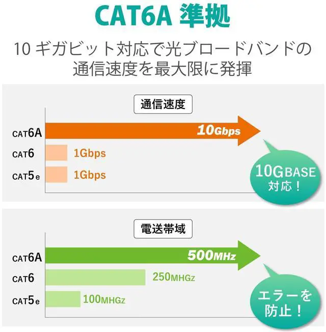 The Cat6A LAN cable is a slim type that supports 10 Gigabit Ethernet "10GBASE-T" which is ideal for high-speed communication