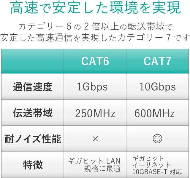 Cable length: 3 m Standard: CAT7(10BASE-T/100BASE-TX/1000BASE-T/1000BASE-TX/10GBASE-T) Adopted gold-plated shield plug which strongly suppresses signal deterioration to rust etc. Cable thickness: 5.7 mm