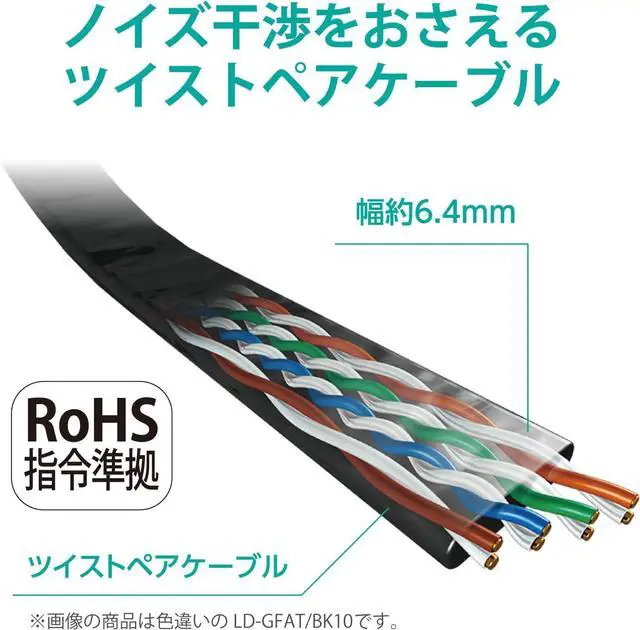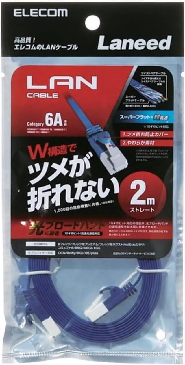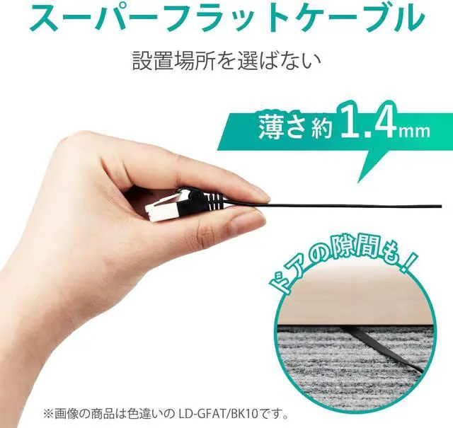 This is a flat type Cat6A compliant LAN cable that supports 10 Gigabit Ethernet, which guarantees a frequency band of 500MHz. It is approximately 0.06 inch (1.4 mm) thick and has a flat cable that can be installed anywhere and a connector that prevents cracking. Pass 1000 bending tests (verified by our company)