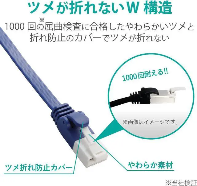 The LAN cable is made with a double structure that is resistant to cracking and has connectors made of highly durable material that is resistant to bending. Pass 1000 bending tests (verified by our company)