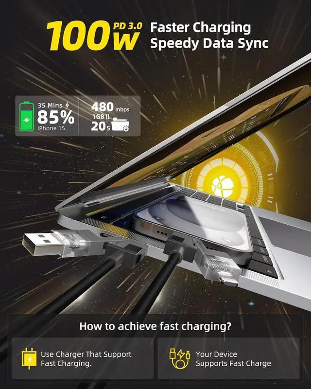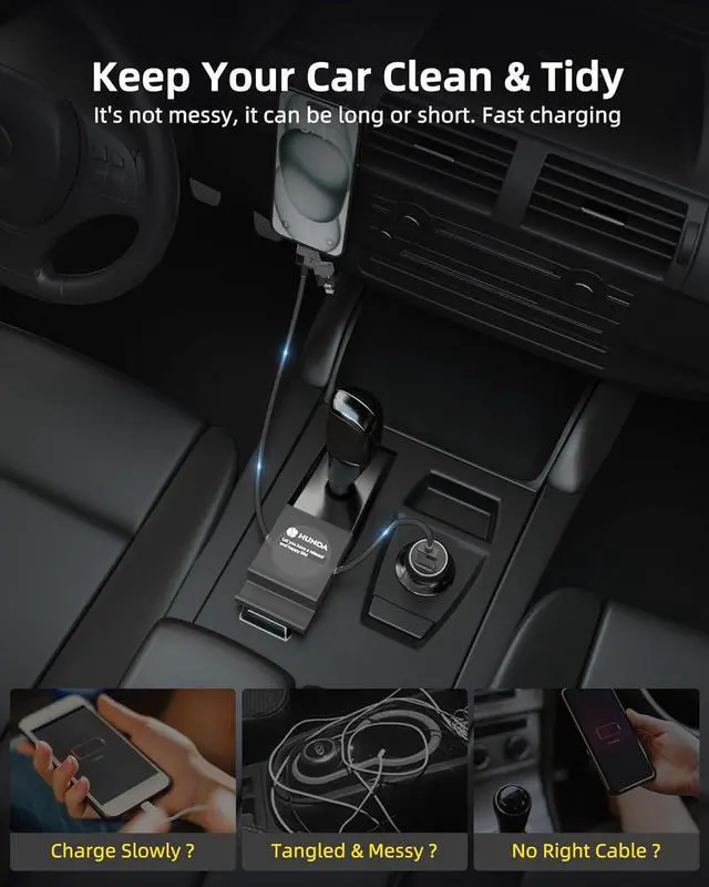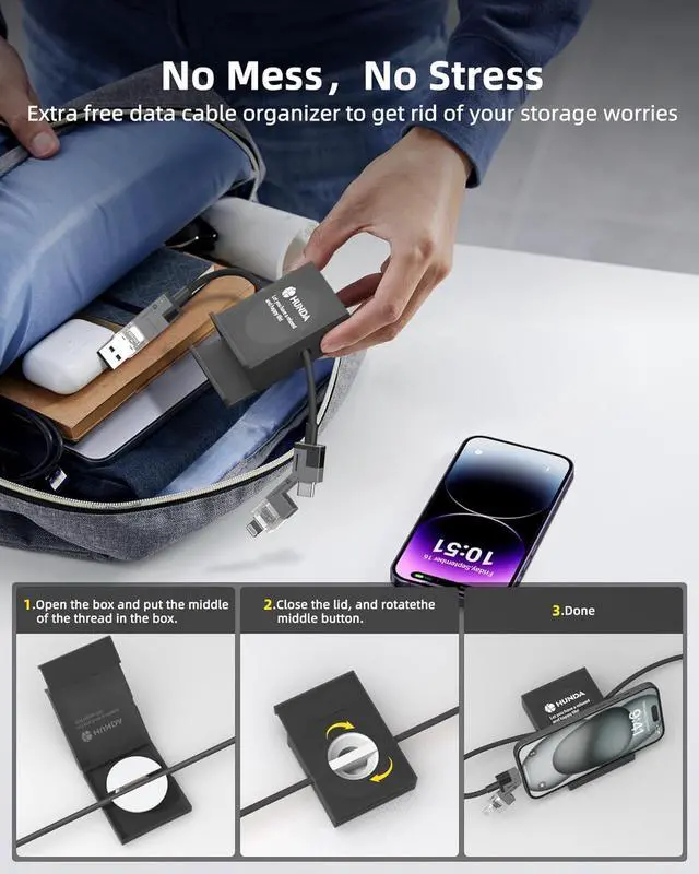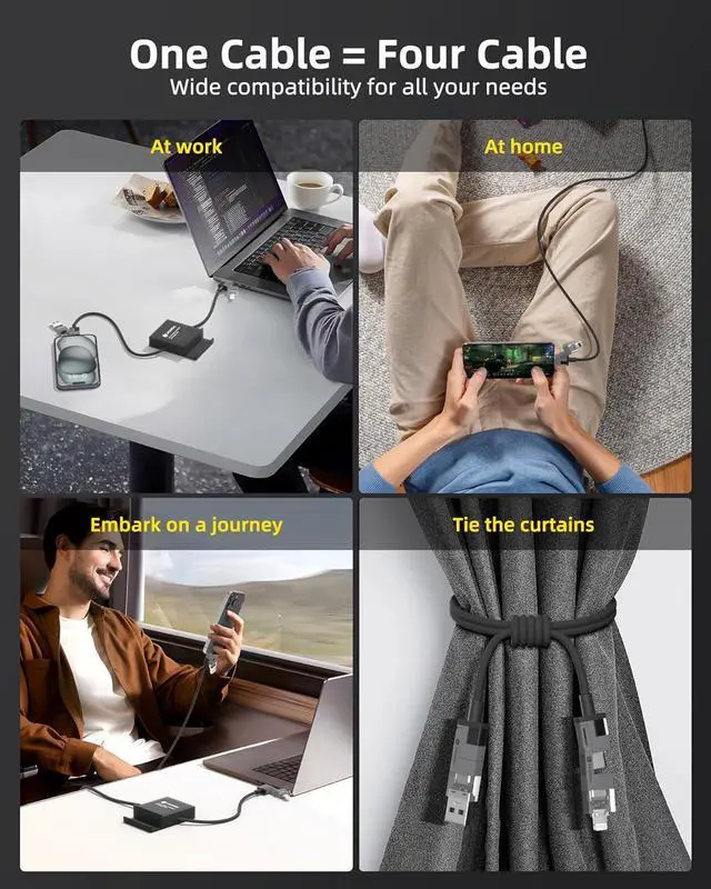Perfect CompatibleHunda lightning to USB C cable combines four ports - USB A to C, USB A to Lightning, USB C to Lightning, and USB C to USB C - in one cable. No need to carry multiple cables for different devices, such as Macbook/iPad/Android/Samsung/iPhone 15 pro max charger cable. NoteTo solve the compatibility problem with the phone case, we lengthened all the ports by 0.2mm, so that the phone case can be charged perfectly even if it is very thick.