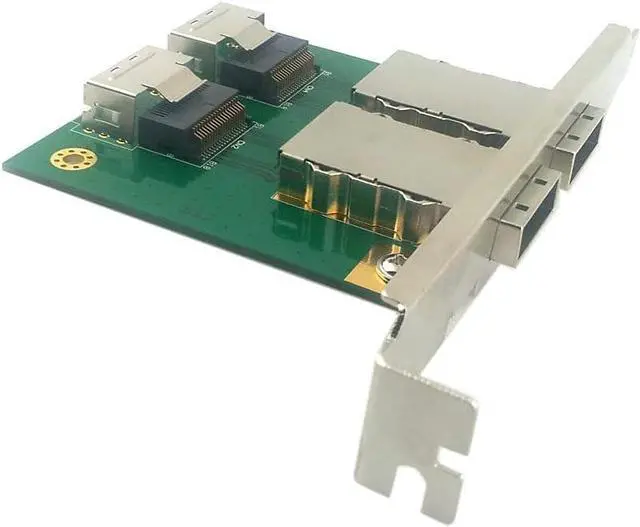 2-Ports SFF-8087 to SFF-8088 Adapter with Full PCI Slot Profile Mounting Bracket; External 8088 to internal 8087 adapter, will work both on the host and device side.