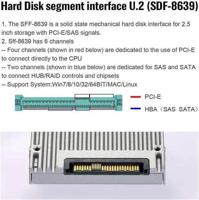 PCI-E 3.0 4.0 to SFF-8654 Slimline SAS Card Adapter and U.2 U2 SFF-8639 NVME PCIe SSD Cable for Mainboard SSD