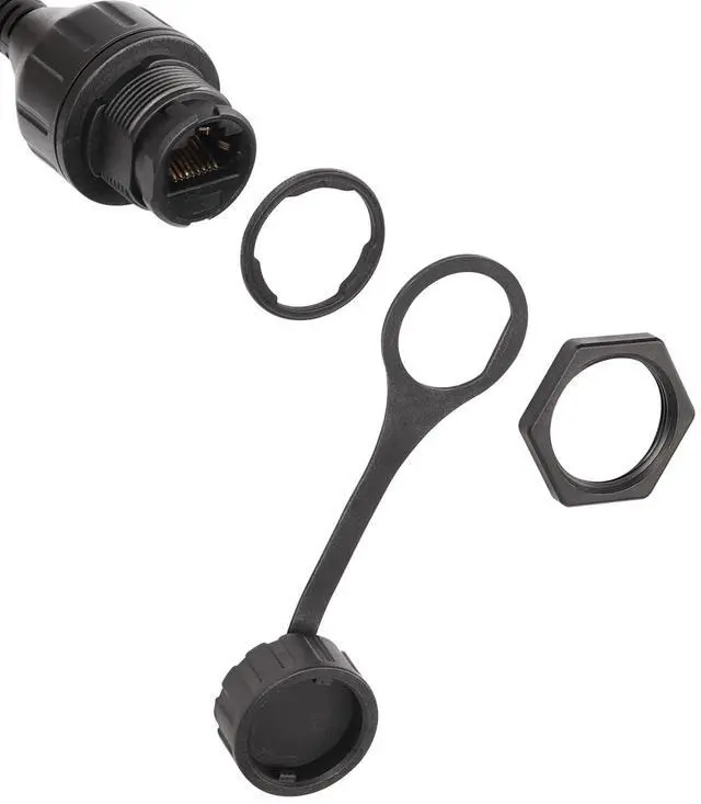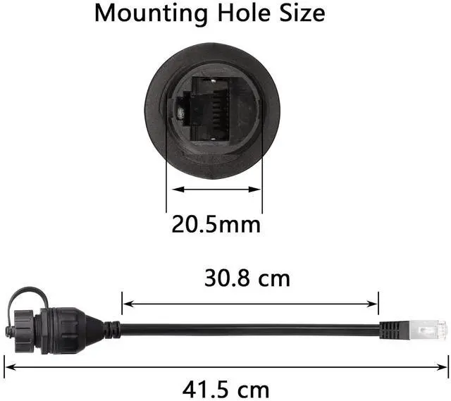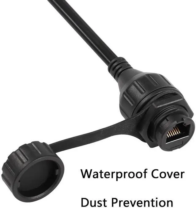 One end has a waterproof cover and panel hole design, which can be fixed to the panel. The RJ45 8P8C ethernet waterproof cable is connected to the RJ45 jack connector and can be used as a RJ45 internet extension cable.
