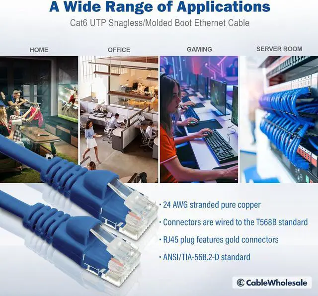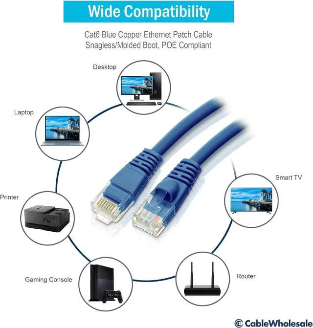 High Performance RJ45 Ethernet Patch Cable provides universal connectivity for LAN network components such as PCs, computer servers, printers, routers, switch boxes, network media players, NAS, VoIP phones, Poe devices, and more