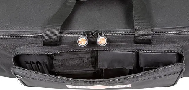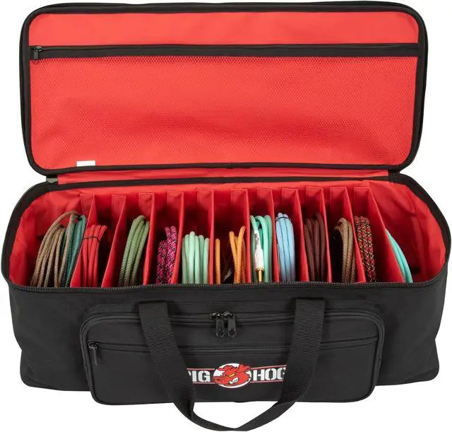 The Pig Hog Cable Organizer Bag is built to stand up to the most grueling tour conditions imaginable. The bag's dozen slots for cables and accessories keeps all your gear easily identifiable and accessible. Additionally, the front pocket features two smaller zippered mesh pockets, two expanding Velcro flap pockets, and three pen slots, for the ultimate in organization. The sturdy webbing handles and removable shoulder strap are both padded to make transportation a breeze. Don't settle for anything less for your cable management.