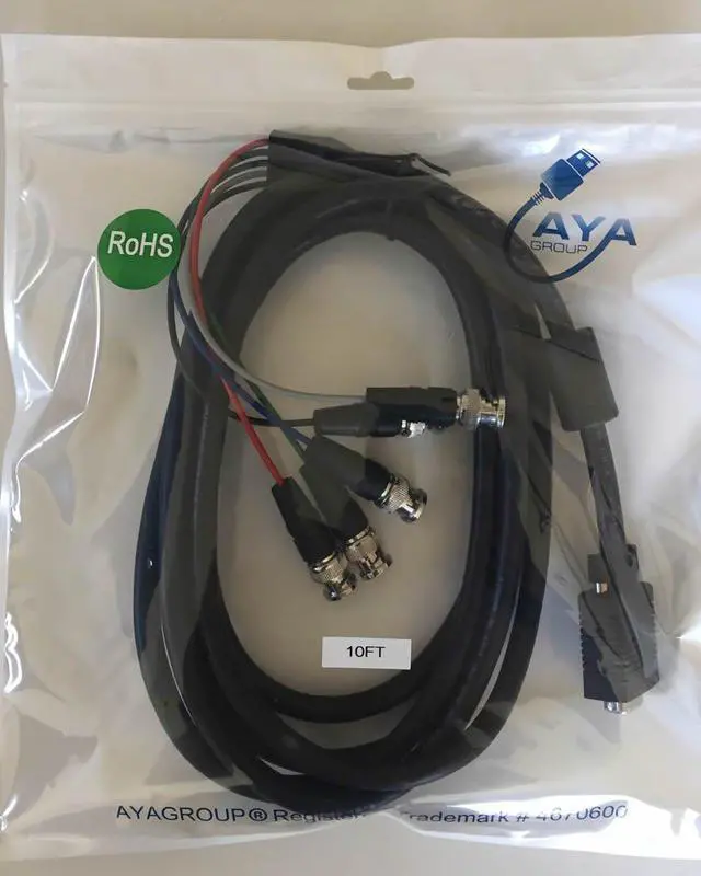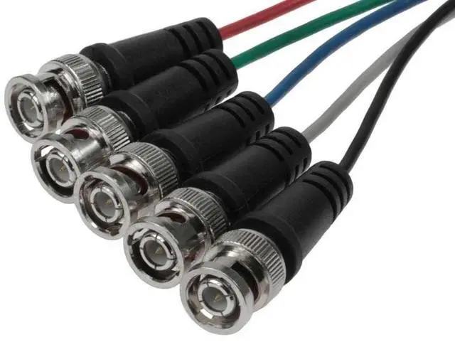 Red, Green, Blue, Gray or White for Horizontal Sync and Black for Vertical Sync. Connectors: 5 BNC(RGBHV) male to D-sub HD-15 pin VGA male.