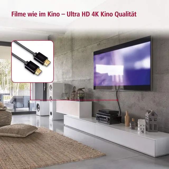HDMI cable for perfect, high-resolution cinema quality, 4096 x 2160 (4K) pixels