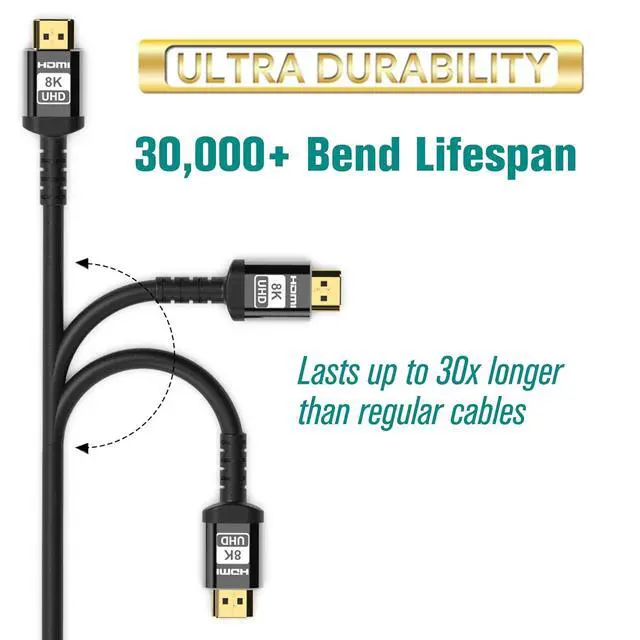 48Gbps Bandwidth: Supporting the 48Gbps bandwidth is the new Ultra High Speed HDMI Cable. The cable ensures ultra high-bandwidth dependent features are delivered including uncompressed 8K video with HDR. It features exceptionally low EMI (electro-magnetic interference) which reduces interference with nearby wireless devices.