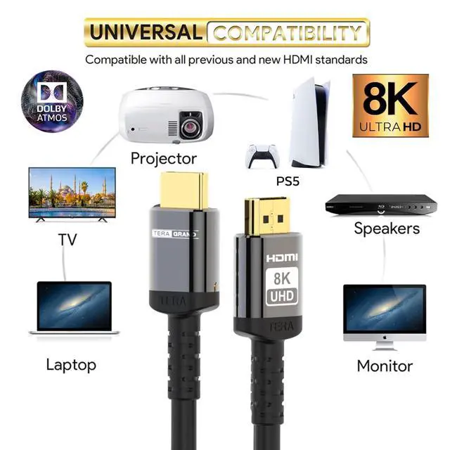 Ultra High Speed HDMI Certified Cable: Compatible with all the latest HDMI 2.1 and HDMI 2.0 devices like TV, projector, receiver, player, and many other UHD ready devices. This Ultra High Speed HDMI Certified Cable is also backward compatible and can be used with the existing installed base of HDMI devices.