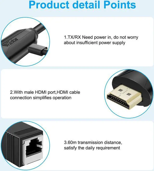 Install Easily No Driver Required Our HDMI extender adapter is male hdmi and female rj45 port. You do not extral buy HDMI cable . it can supply for long distance transmission of high definition signal, easy to install and just plug and play.