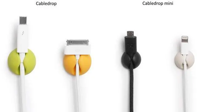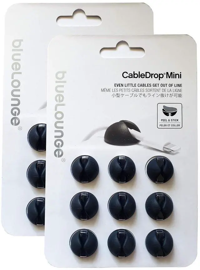 CableDrop Mini is a tinier version of the ever-popular CableDrop. The CableDrop Mini, like the original CableDrop, is designed to gently clasp cables and keep connectors within reach when devices are unplugged. CableDrop Mini has a self-adhesive backing so users can peel and stick anywhere they need to route their connectors.