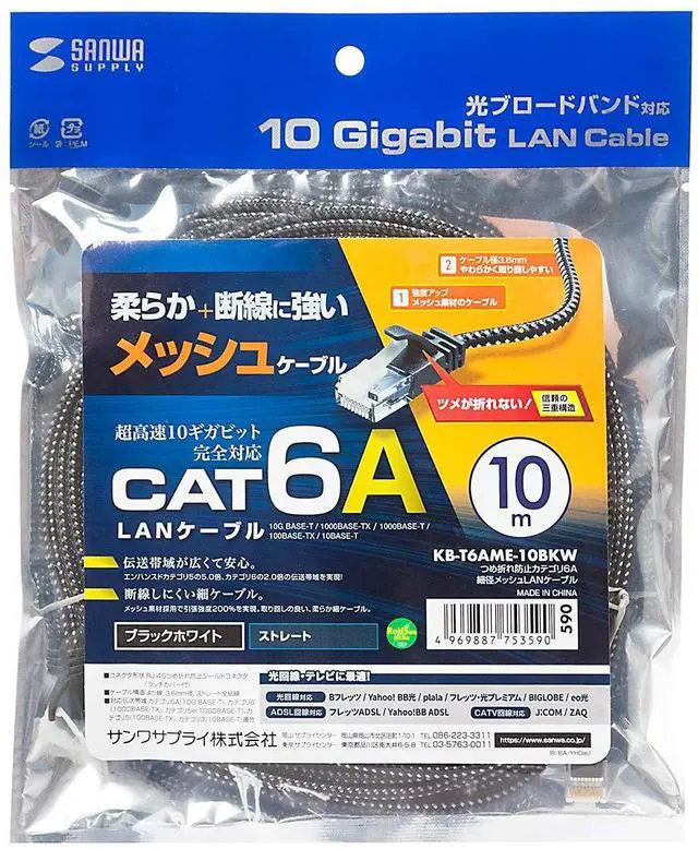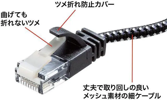 10G compatible CAT6A LAN cable with reliable anti-tear connectors and thin diameter mesh