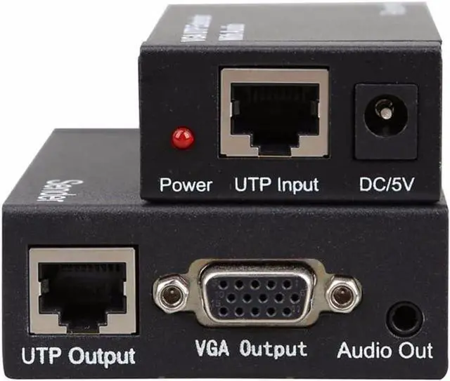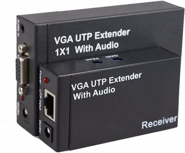 SpecificationsThis device has many features that enable it to perform in a superior manner. Among those features you will find: Extend VGA video and stereo audio signal max up to 300m over one UTP cable with cross stand inside Adjusting GAIN and PEAK to adapt for the different length of UTP cabl GAIN: Brightness adjustment PEAK: Skew adjustment Supports resolution max up to 1920x1200 Dual output at local unit: 1 x VGA output for local site, plus 1 x UTP output for remote