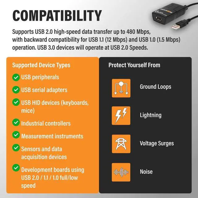 FAST USB 2.0 ISOLATOR: Delivers true High-Speed 480Mbps usb data transfers unlike competitors limited to 12Mbps. Our audio hum eliminator ensures noise-free, high-fidelity audio for professional studios or sensitive audio systems, and DAW connections.