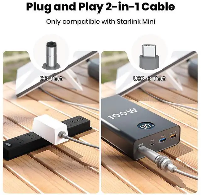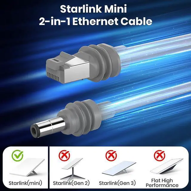 2 in 1 cable designed for starlink mini: Combines ethernet + power supply into a single cable (2 in 1 Cable with USB C adapter). Slashes installation time by 50% and reduces potential failure points for outdoor/mobile setups.