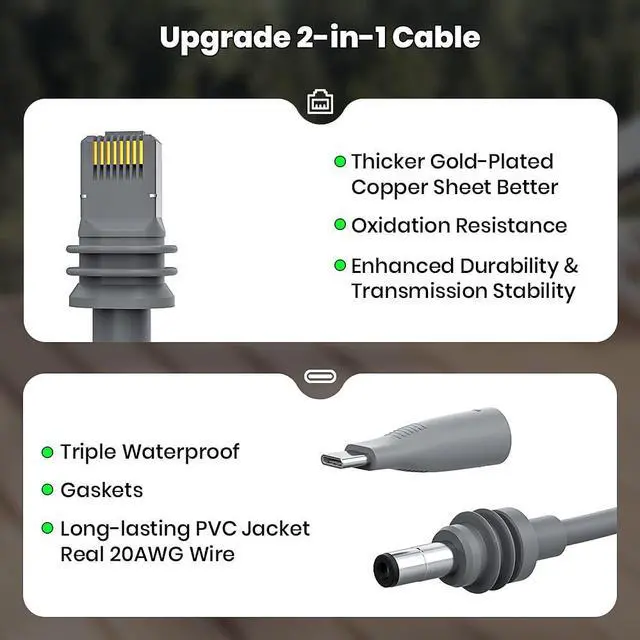 2 in 1 cable designed for starlink mini: Combines ethernet + power supply into a single cable (2 in 1 Cable with USB C adapter).Slashes installation time by 50% and reduces potential failure points for outdoor/mobile setups.
