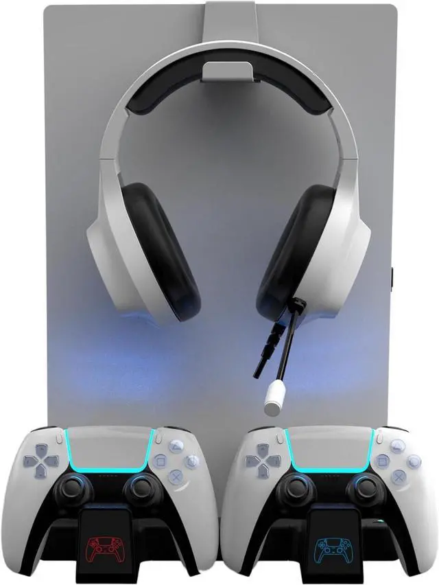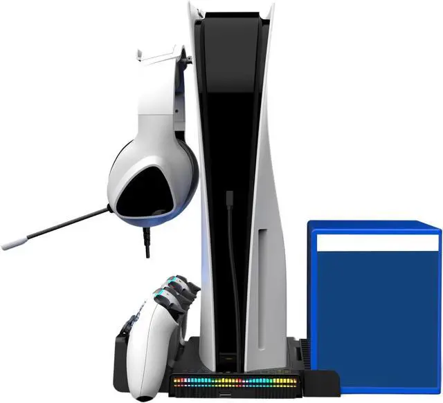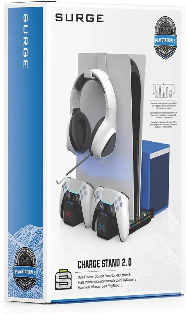 Surge Multi-Function Charging Stand for PlayStation 5, PS5 Slim, Digital and Disc Version with Cooling Fans, 2 Charge Docks for DualSense & DualSense Edge Controllers, Headset Hook and Game Storage