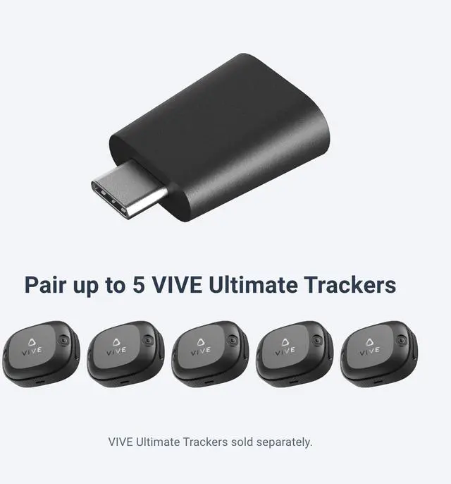 Leveraging a proprietary low-latency 2.4 GHz connection, this stylish and durable dongle ensures rapid data transmission for real-time tracking. It's capable of pairing a compatible VR headset with up to five VIVE Ultimate Trackers, enabling comprehensive full-body and object tracking for an immersive VR experience.