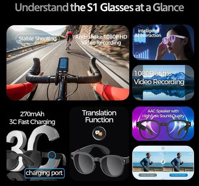 Title: See. Translate. Record. The AIMB-S1 Your All-in-One AI Smart Glasses.