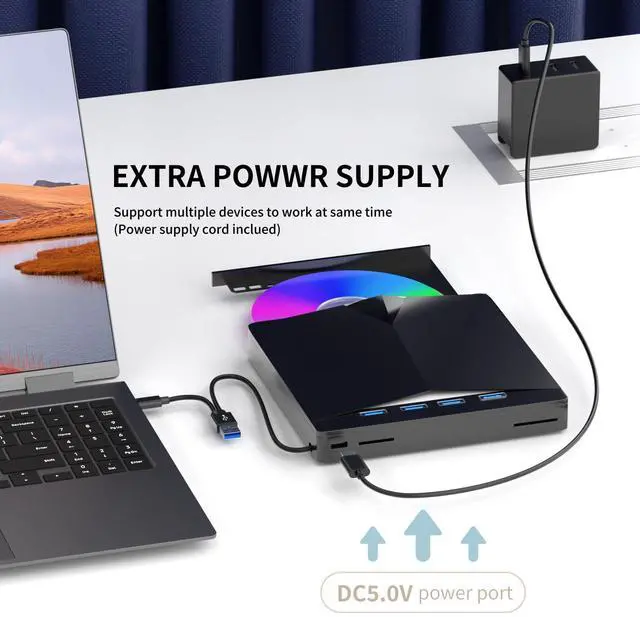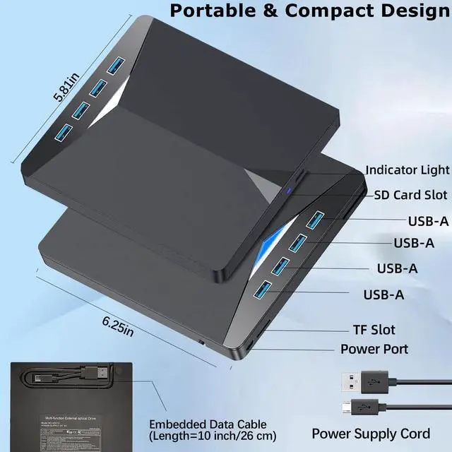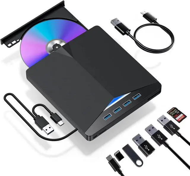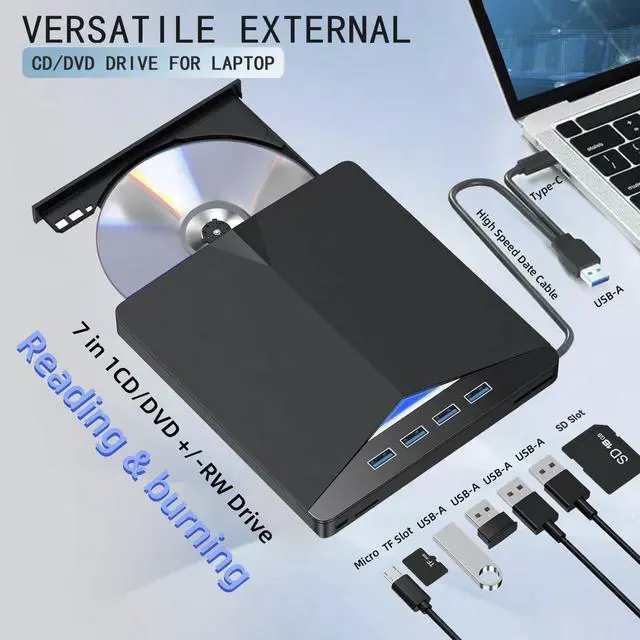 [(What You Can Do with It)] This usb cd drive is not just a DVD and CD ROM (reader) but also a burner (writer) and ripper. You can use it to read movies DVDs/ music CDs, burn music, photos, videos, and files onto blank CDs or DVDs, import music, video, photos, and data from discs to your computer, install software, system, games, and everything else related to CD/DVD. It supports the reading and writing of various types of disks, including CD+-R/RW, CD-ROM, DVD+-R/RW, DVD-RAM, VCD, and SVCD disks.