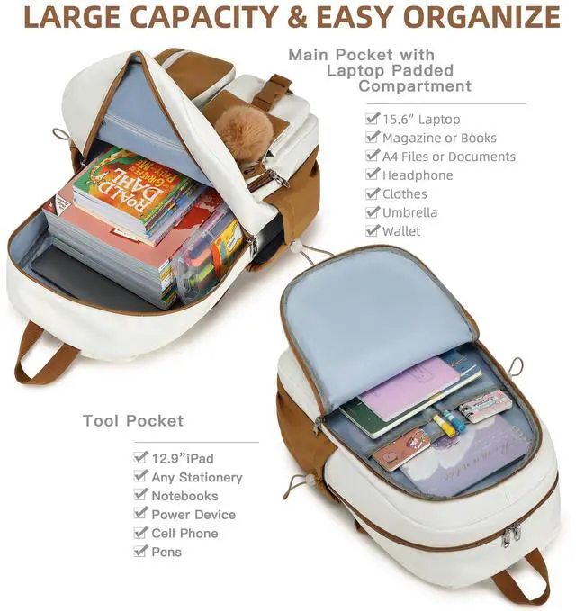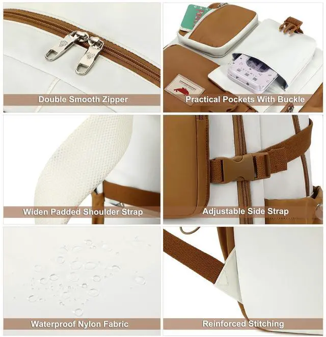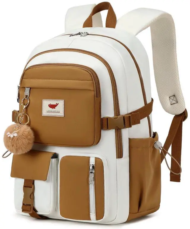 Laptop Backpack 15.6 Inch Kids Elementary Middle High School Bag College Backpacks Anti Theft Travel Back Pack Large Bookbags for Teens Girls Women Students (Beige Khaki)