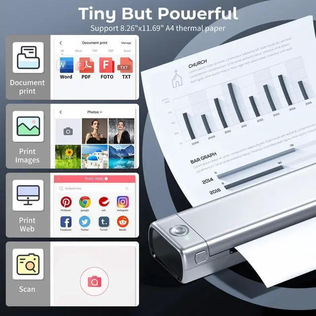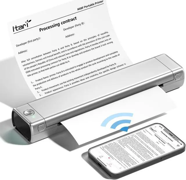 Portable Printer: M08F-Letter portable printers wireless for travel is compact and portable.This small portable printer fit easily into your briefcase or computer bag, and can be quickly used in any vehicle or small work area.The weight of M08F-Letter mobile printer is 1.57LB only,80% smaller in size and weight than traditional printers.
