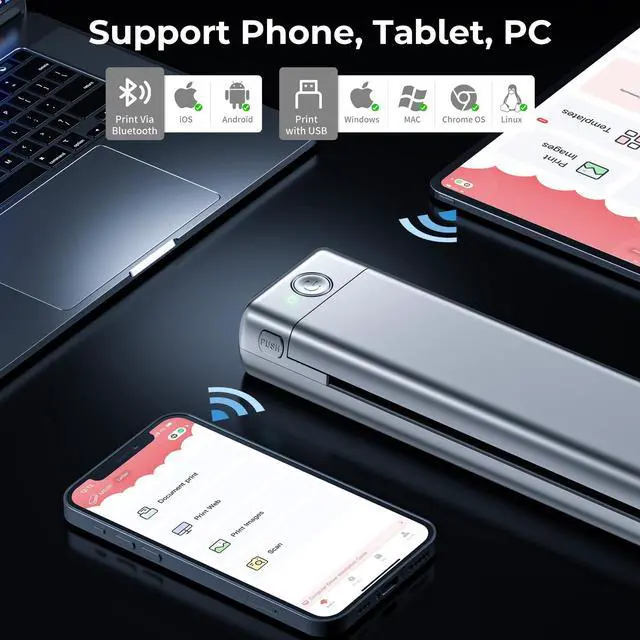 Bluetooth and Wireless Printer:Itari travel printer adopts the most advanced Bluetooth wireless connection method, you can connect the printer through your mobile phone anytime, anywhere, no longer limited by the place.This inkless printer for laptop also support USB connection for MacOS and Windows and Chrome)