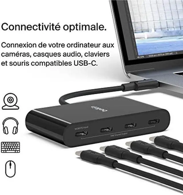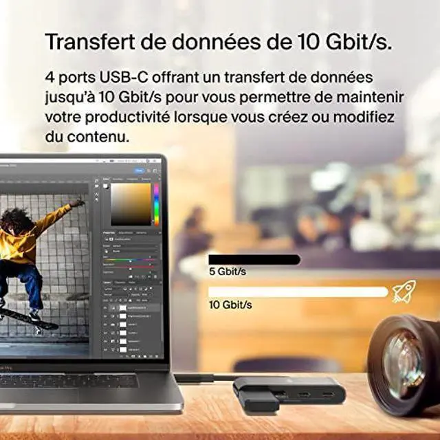 Ignite your best creative self and optimize productivity with a 4-port hub that delivers accelerated data transfer speeds, convenient compatibility, and supports a wide array of audio interfaces. This sleek, compact adapter plugs into your USB-C compatible MacBook, iPad, PC, or Chromebook to instantly expand your connectivity options. Capability to connect your USB-C laptop to webcams, video capture cards, external SSD PCIE hard drives, keyboard, mice and USB-C mics and headphones, and more is at your fingertips. Whether you're in your office or on the road, you can build a multipurpose workstation for creating, streaming, editing, or gaming.