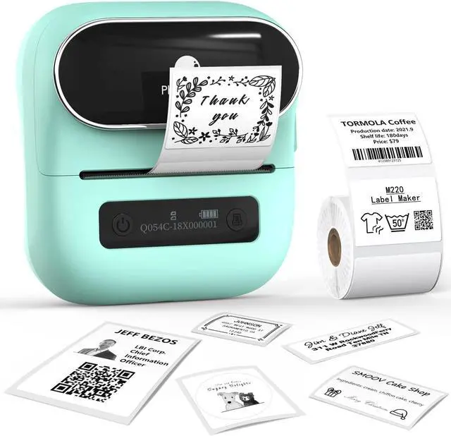 Phomemo M220 Label Maker Green & 1 Roll Transparent Thermal Label 1.96"x1.18"(50x30mm), Upgrade 3 Inch Barcode Portable Printer, for Office & Small Business, Compatible with Phones&PC