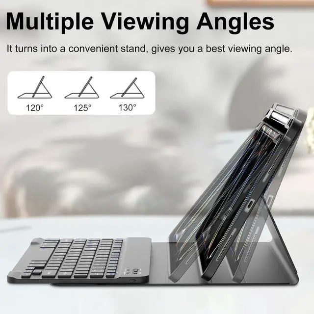 [(Adjustable Multiple Viewing Angles)] Keyboard case for iPad Pro 13-inch (M4) has built-in anti-slip grooves that support 3 viewing angles to adjust the viewing angle as you like. Move the tablet forward or backward along of the case cover to choose a favorite suitable angle to use the tablet for studying, working, typing, viewing, reading, sketching, etc