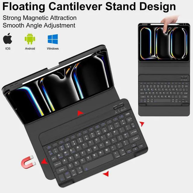 [(Compatibility)] The keyboard case designed for New iPad Pro 13 Inch (M4) released in 2024 (Models:A2925/A2926/A3007). NOT compatible with any other iPad Pro models. Before you order, please check the back of iPad to confirm the model number. Note: The Tablet and Pencil are NOT included