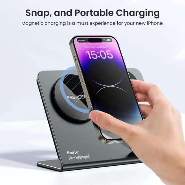 Magnetic Design: Supports both horizontal and vertical phone charging, serving as a wireless charger and phone stand, suitable for home and office use. Made of aluminum alloy, it is sturdy, durable, and has a classic, elegant appearance