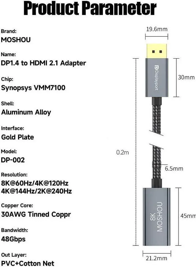 Perfect for Host Devices which are featured with the DP 1.4 graphic card that supports DP video signal output for gaming, commercial applications**.