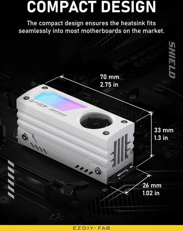 Shield ARGB M.2 SSD Heatsink with build-in 20mm PWM Fan, Premium Aluminum Design,5V 3-Pin ARGB Sync , High-Performance SSD Cooler for M.2 2280-White-1 Pack
