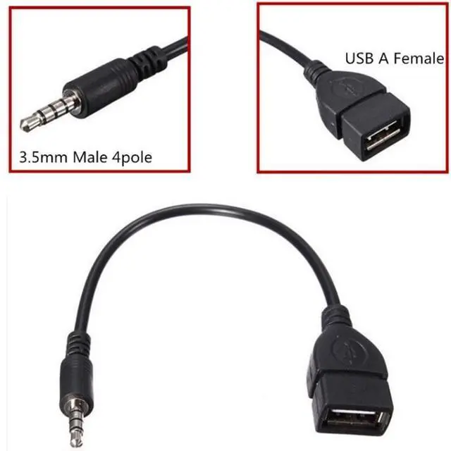 Product Usage Instructions: The 3.5 mm AUX interface of ordinary car audiosystems does not have the function of MP3 audio decoding and playback. Therefore, this data cable cannot be used. Only car-mounted GPS, CD, andDVD audio systems with the function of MP3 audio decoding and playbackcan use this data cable. The 3.5 mm plug ofthis cable is connected to the 3.5 mm AUX audio interface ofthe car-mounted GPS, CD, and DVD audiosystem, and the otherend is USB, which is connected to the UsB port of theUSB drive to enable playing songs from the USB drive in the car. The 3.5 mmplug ofthis cable is connected to the AUX audio interface ofthe car's audiosystem, and the otherend is USB, which is connected to the USB drive. Thisenables playing songs from the USB drive in the car. The music soundquality is pure and clear.