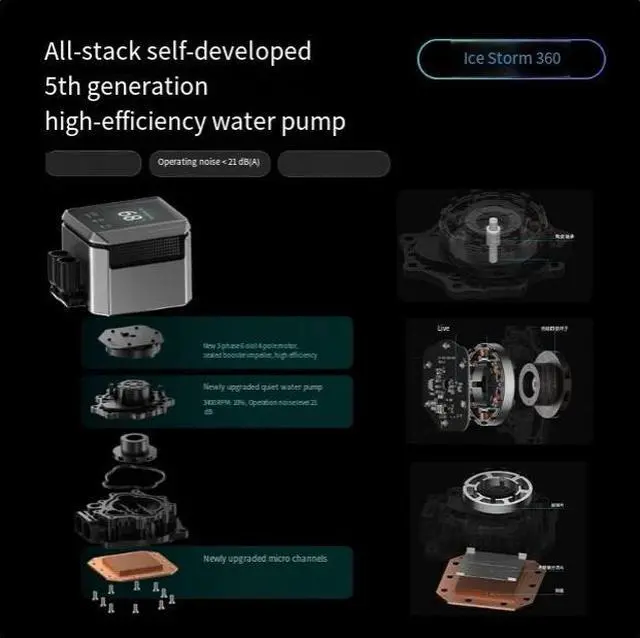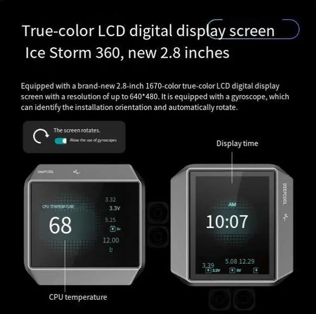 2.8 -inch true-color digital display screen | New intelligent control software 1 High-performance PBTfan fully self-developed 5th generation high-efficiency water pump Dynamic balance pressure reliefcoolingfan Easyinstallation fastening device