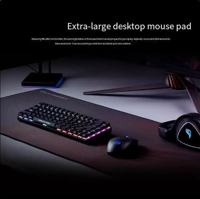 Extra-large desktop mouse pad Measuring 900 x 400 x 3 mm, the Second Generation Assault Armor has ample spaceforyourlaptop, keyboard, mouse and other gaming accessories. it can also protectyourdeskfrom accidentalspils and scratches.