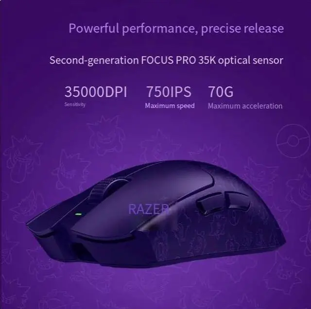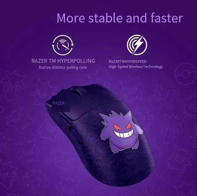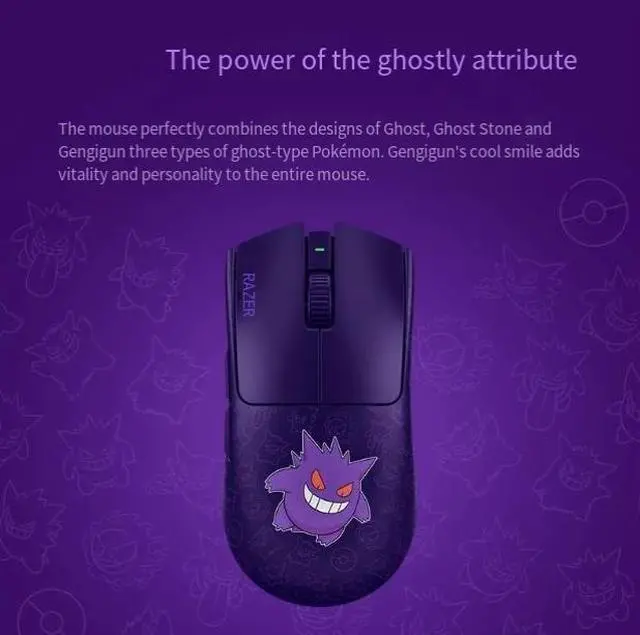 The mouse has a dark purple background, perfectly integrating thedesigns of Ghost, Ghost Stone and Gengigun three types of ghost-themedPokémon. The pattern is exquisite and clear, with unique details. Gengigun's cool smile adds vitality and personality to the entire mouse.